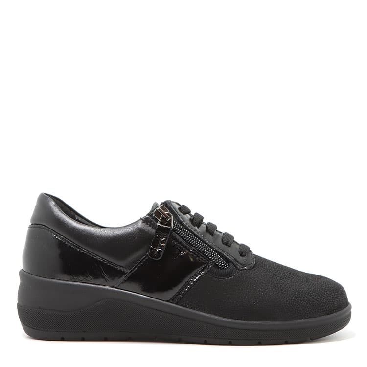 Soulier lacé noir extensible et talon compensé Grünland
