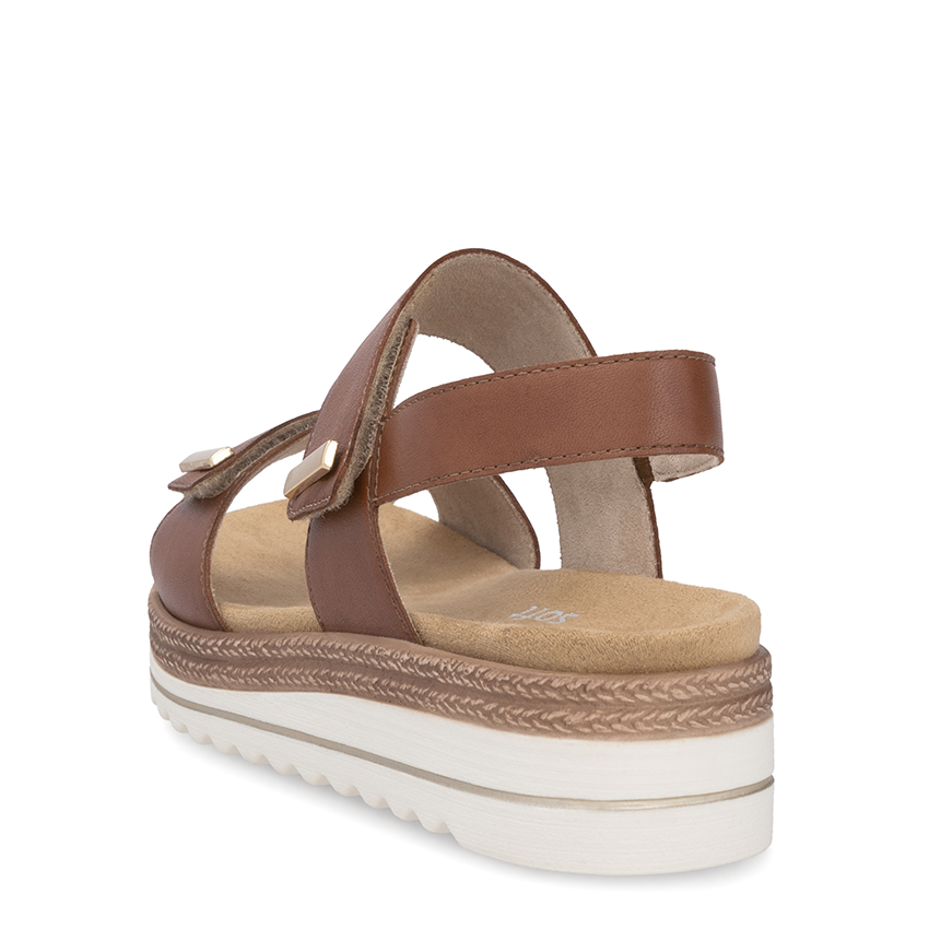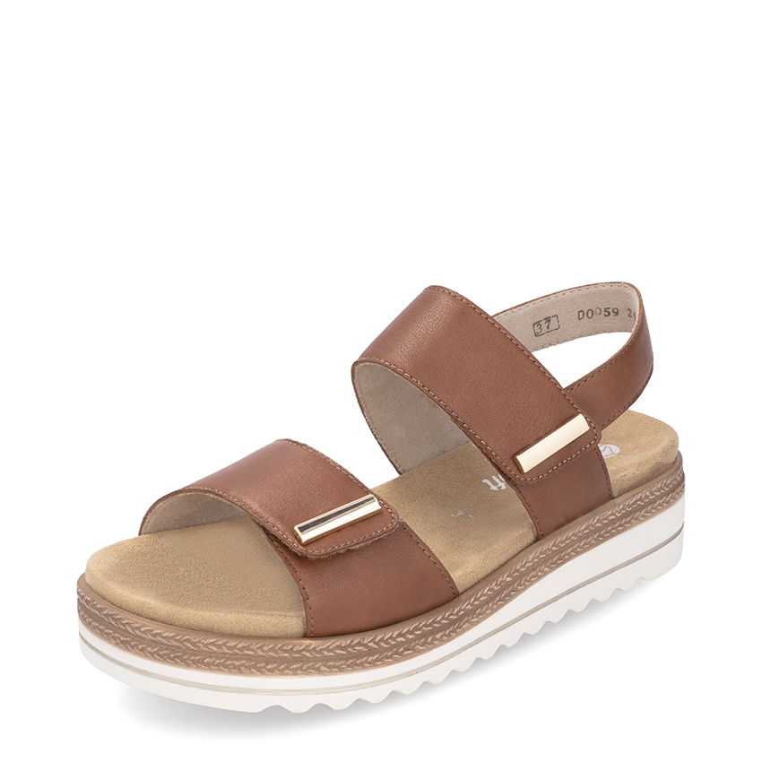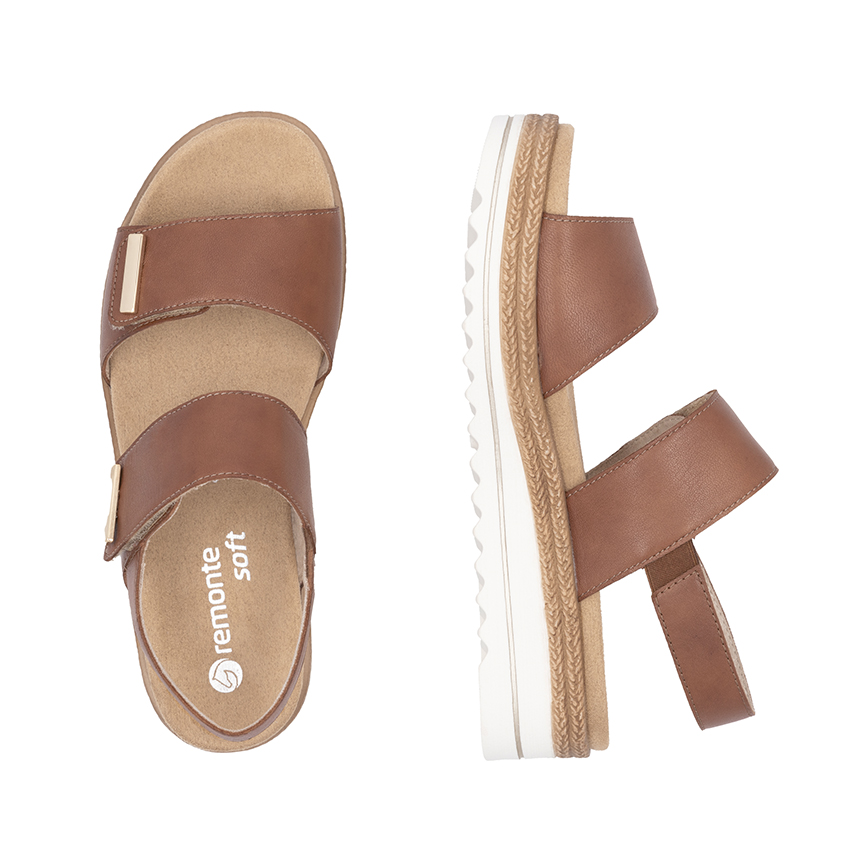 Sandale tan ave talon compensé velcros de Remonte