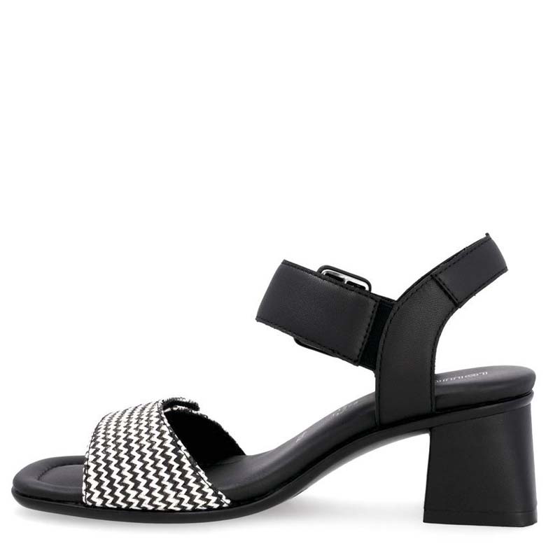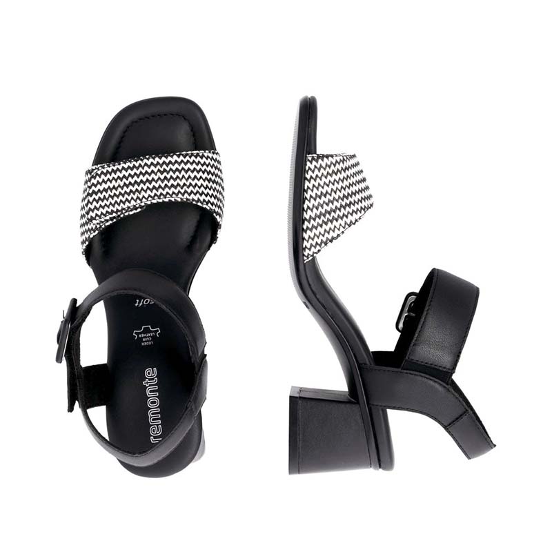 - Matière : Simili cuir noir et textile à motif zigzag noir et blanc