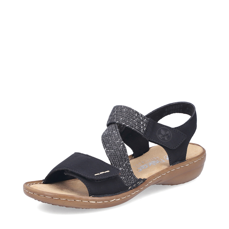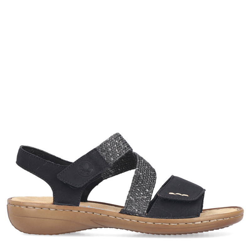 La sandale Rieker 60862-00 noir femme est un incontournable de la saison estivale. Facile à enfiler grâce à sa bride auto-agrippante à l’avant et ses bandes élastiques croisées, elle offre un confort immédiat et un bon ajustement dès le premier port.