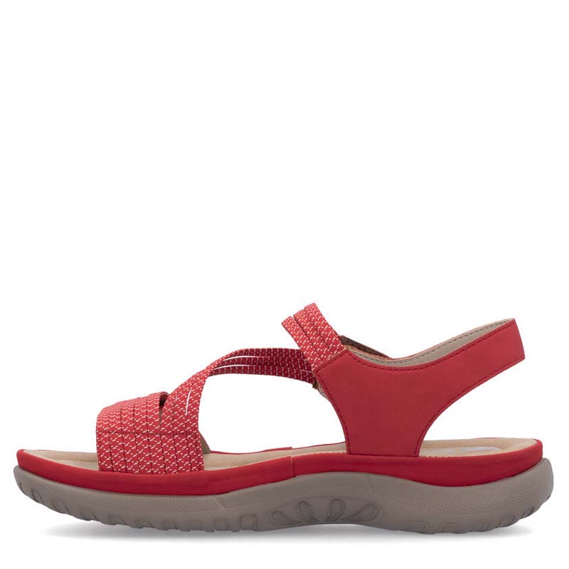 Grâce à la technologie Rieker Antistress, cette sandale épouse votre pied et réduit la fatigue à chaque pas. Que vous cherchiez un modèle décontracté ou chic, la Rieker 64870-33 rouge pour femme deviendra vite un indispensable de votre garde-robe estivale. Disponible en ligne et en boutique chez Chaussures Parent à Québec, Ste-Foy et Charlesbourg.