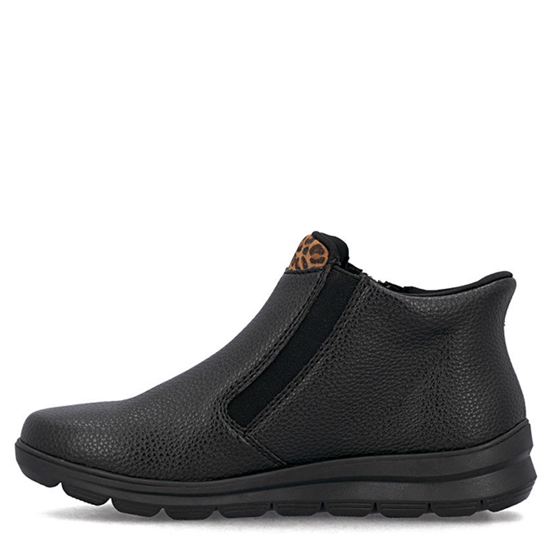 Bottillon noir/motif léopard avec fermeture-éclair Rieker